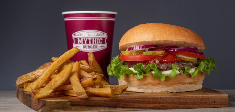 + frites fraîches natures ou potatoes (+1€ sauce Mythic) ou salade